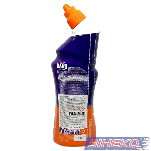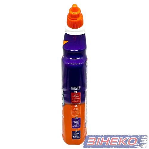 Інструкція із застосування: 1. Підніміть кришку унітазу і направте носик під обідок унітазу; 2. Натисніть і нанесіть по всій окружності унітазу щоб гель повністю вкрив поверхню; 3. Для найкращого результату, залиште на 10 хвилин, почистіть щіткою і змийте; 4. Для знищення мікробів залиште на 60 хвилин, почистіть щіткою і змийте. Не допускати потрапляння на інші поверхні, окрім унітазу. Вимити руки та відкриті ділянки шкіри перед їжею і після використання. Не використовувати з відбілювачами чи іншими засобами для чищення. Після використання: тримайте щільно закритим. Зберігайте вертикально в оригінальній упаковці в прохолодному сухому місці, подалі від прямих сонячних променів, несумісних матеріалів, їжі та напоїв.