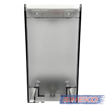 Дозатор для рідкого мила виконаний з удароміцного димчастого пластику ABS, кнопка і кришка – білий пластик. Порція мила видається при натисканні на білу кнопку, що розташована на передній частині пристрою. Прозорий дисчастий пластик дозволяє легко контролювати рівень мила в дозаторі.