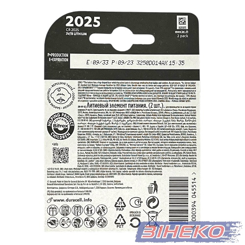 DURAСELL плоскі батарейки літієві 3V спеціальні 2025 2 шт 5000394045514 Ви можете купити в компанії “ЗІНЕКО”.
