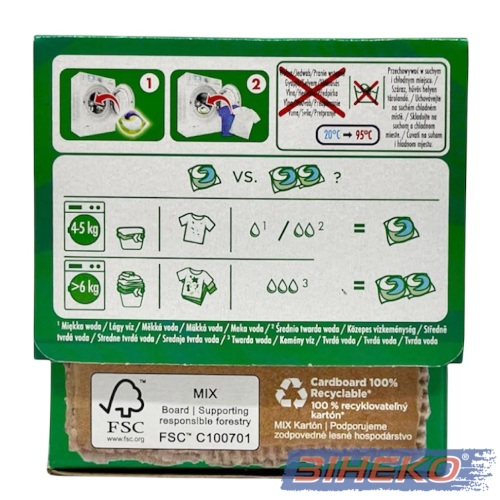 Висококонцентрований засіб знаходиться в водорозчинній плівці, яка біологічно розкладається та миттєво зникає під час контакту з водою.