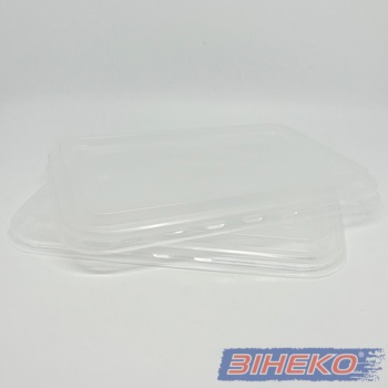Кришка прозорого кольору, виготовлена з пластику, підходить до лотків Т-1, зручна у використанні. Кришка має ребра жорсткості, які щільно закривають лоток, і при транспортуванні ваша продукція не висипиться.