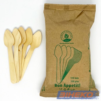ГоловнаСтолові прибори одноразові Ложечка дерев’яна кавова 11 см 100шт (папер. уп.) Укр-Т