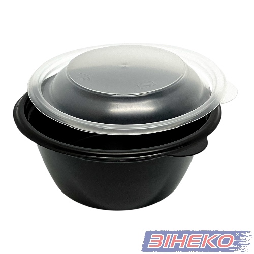Ємність-супниця чорна РР + кришка прозора 500мл (d=13,8см h=6см) комплект-50шт (400шт/ящ) ПГУ 249.42 грн