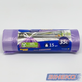 Мішки Фрекен Бок з затяжкою 35л 15 шт фіолетові 16402590 міцні Стандарт Ви можете купити в компанії “ЗІНЕКО”.