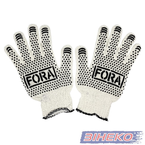 Рукавички FORA 15200 білі, розмір 10 (долоня-мал.ПВХ чорний) ПЕ30%/ХБ70% DOLONI -029805; 13.26 грн
