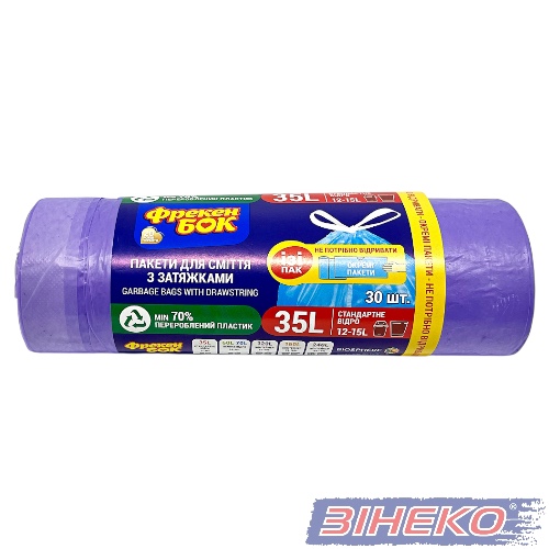 Мішки Фрекен Бок фіолетові з затяжкою 35 л 30 шт 16403495 4823071618785 Ви можете купити в компанії “ЗІНЕКО”. Мішки для
