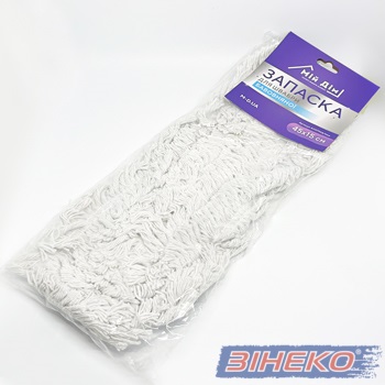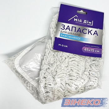 Запасний моп для швабри Мій Дім бавовняний 45*15 . Призначений для миття підлоги із різним покриттям. Не залишає розводів і ворсу. Підходить, як для сухого, так і для волого прибирання. Моп можна прати в пральній машині за температури 40°C.