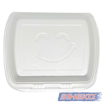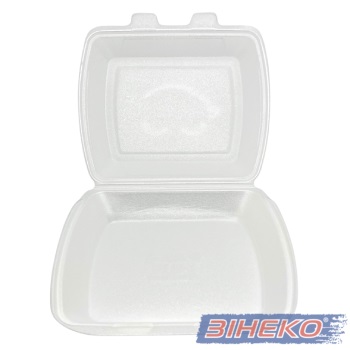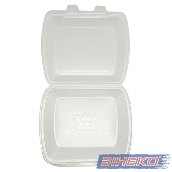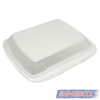 Ланч-бокс з полістиролу МВ-1 для упаковки продуктів харчування, поділяється на два великі ділення.