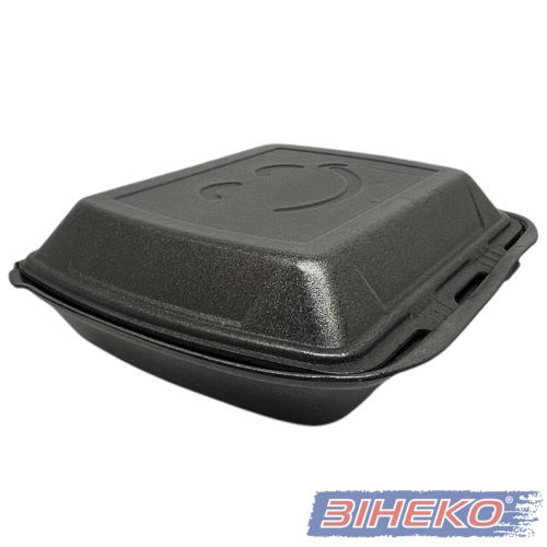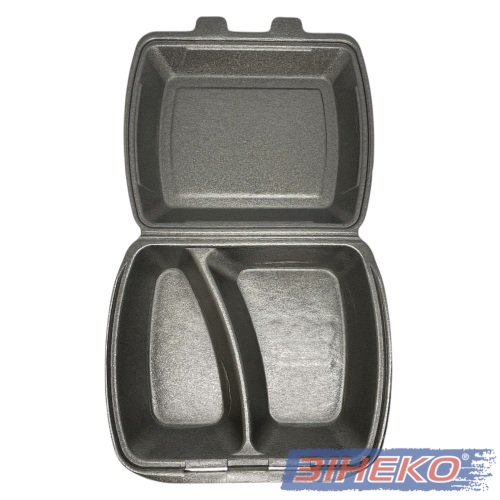 Ланч-бокс з полістиролу МВ-2 для упаковки продуктів харчування, поділяється на два великі ділення.