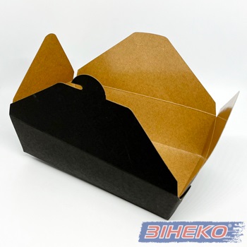 Ланч-бокс 705 чорний/крафт на 1000мл з картону 20,5*12,5*5см 50шт