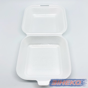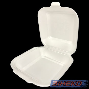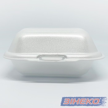 Білий сендвіч-бокс односекційний із спіненого полістиролу з кришкою – ідеальне рішення для зберігання, транспортування та продажу гарячих або холодних страв. Завдяки своїм термоізоляційним властивостям утримує тепло, не деформується та надійно закривається.