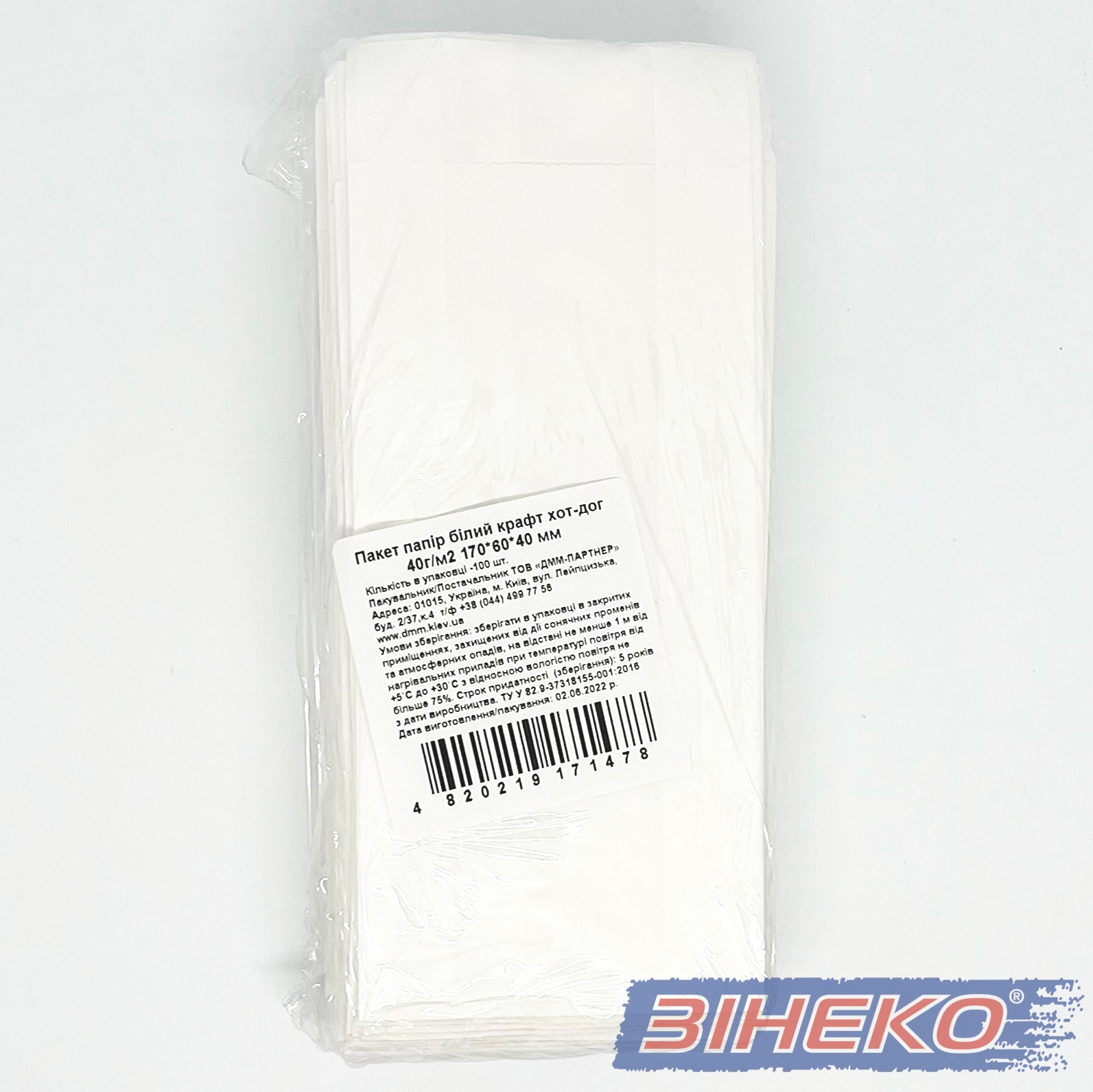Пакет папер. 6х17х4см для пляшки 0,5л, хот-догу 100шт крафт білий 171478 Ви можете купити в компанії “ЗІНЕКО”.