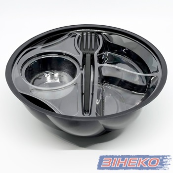 Ємність-миска чорна 143350 РР +кришка (143РР) прозора 350мл (d=13,2см h=4,5 см) 200шт Ви можете купити в компанії “ЗІНЕКО”. Ємність-миску використовують