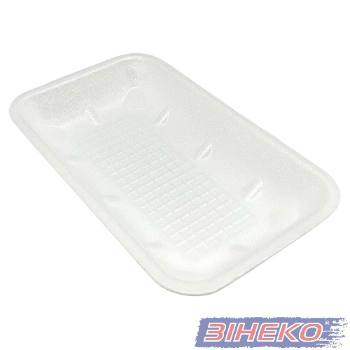 Тарілка – піддон білого кольору, це легка та зручна тара виготовлена зі спіненого полістиролу. Призначена для одноразового використання, ідеально підходить для подачі готових страв, перекусів або продуктів у супермаркетах, кафе, їдальнях чи на заходах.