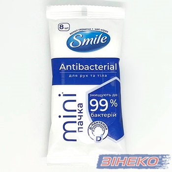 Серветки вологі SMILE MINI 8 шт Антибактеріальні з Д-пантенолом ФБ-42504022 14.64 грн