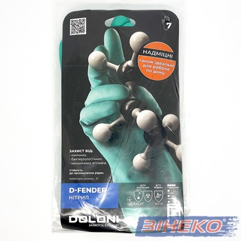 Подовжені гумові рукавички Doloni D-Fender призначені для захисту рук від хімічних речовин, нафтопродуктів та вологи.