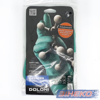 Подовжені гумові рукавички Doloni D-Fender призначені для захисту рук від хімічних речовин, нафтопродуктів та вологи.