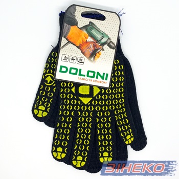 Рукавички 667 чорні (долоня-нанесення ПВХ ) 3 нитки ХБ70%/ПЕ30% 10 розм. Універсал 10клас DOLONI 19.86 грн