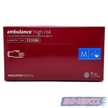 Рукавички AMBULANCE HIGH RISK латекс 19г т.Сині в боксі розм. М-8р 50шт=25пар (7% ПДВ)