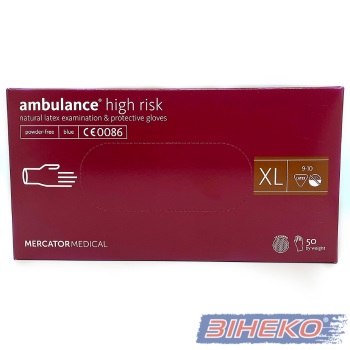 Рукавички AMBULANCE HIGH RISK латекс 19г т.Сині в боксі розм. XL-10р 50шт=25пар (7% ПДВ)