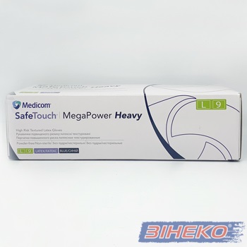 Рукавички медичні 1101H-D Mega Power Heavy латекс 19,5г темно-сині в боксі розмір L-9 р 50 штук = 25 пар (7% ПДВ) Ви можете купити в компанії “ЗІНЕКО”.