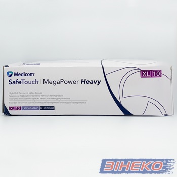 Рукавички Мед-1101H-E Mega Power (Heavy) латекс 19,5г т.Сині в боксі розм.XL-10р 50шт=25пар (7% ПДВ)