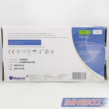 Рукавички Мед 1123 D латекс (Без пудри) в боксі розмір L – 8 р 100 штук (7% ПДВ) Ви можете купити в компанії “ЗІНЕКО”.