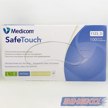 Рукавички Мед 1123 D латекс хлоровані (Без пудри) в боксі розм.L-9р 100шт (7% ПДВ) 178.74 грн
