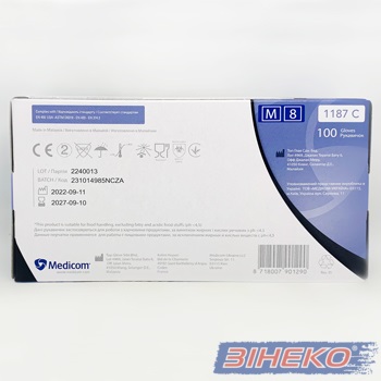 Рукавички Мед 1187 С нітрил Чорні в боксі розмір М-8р 100 штук / 50 пар (7% ПДВ) Ви можете купити в компанії “ЗІНЕКО”.