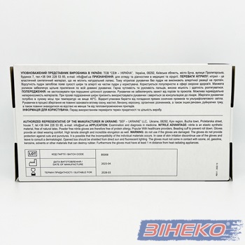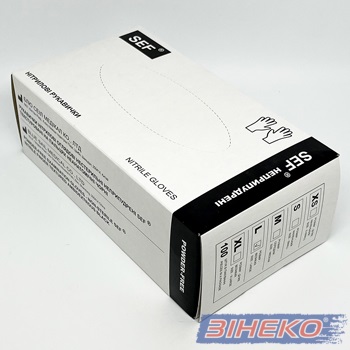 Рукавички медичні нестерильні неприпудрені торгової марки SEF. Для одноразового використання. Для індивідуального захисту. Продукт не містить натурального латексу та пудри, які можуть викликати алергічну реакцію у деяких користувачів. Перед використанням перевірити цілісність рукавичок, не користуватися пошкодженими рукавичками. Не використовувати для захисту від хімічних загроз.