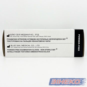 Рукавички Мед SEF (нітрил Чорні міцні-5г) без пудри 100 штук/ 50 пар розмір XL (7% ПДВ) Ви можете купити в компанії “ЗІНЕКО”.