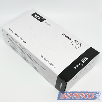 Рукавички медичні нестерильні неприпудрені торгової марки SEF. Для одноразового використання. Для індивідуального захисту. Продукт не містить натурального латексу та пудри, які можуть викликати алергічну реакцію у деяких користувачів. Перед використанням перевірити цілісність рукавичок, не користуватися пошкодженими рукавичками. Не використовувати для захисту від хімічних загроз.