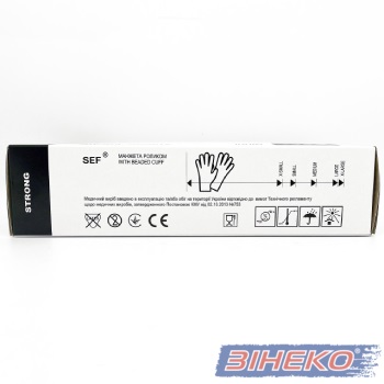 Рукавички медичні нестерильні неприпудрені торгової марки SEF. Для одноразового використання. Для індивідуального захисту. Продукт не містить натурального латексу та пудри, які можуть викликати алергічну реакцію у деяких користувачів. Перед використанням перевірити цілісність рукавичок, не користуватися пошкодженими рукавичками. Не використовувати для захисту від хімічних загроз.