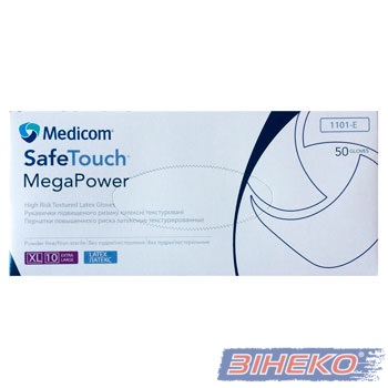 Рукавички Мед-1101-E Mega Power (High Risk) латекс 13,5г т.Сині в боксі розм.XL-10р 50шт=25пар (7% ПДВ) 273.48 грн