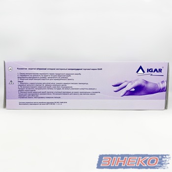Рукавички Мед IGAR (нітрил фіолет-міцні) без пудри 200шт р.S(6-7) в боксі (7% ПДВ)