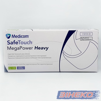 Рукавички Мед-1101H-D Mega Power (Heavy) латекс 19,5г т.Сині в боксі розм.L-9р 50шт=25пар (7% ПДВ) 313.50 грн