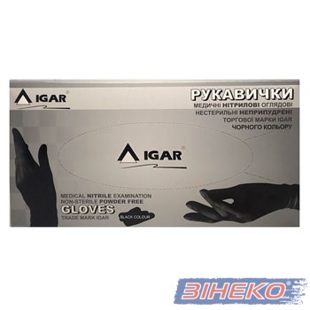 Рукавички Мед IGAR-9135 (нітрил Чорні міцні) без пудри 200шт р.М (7% ПДВ)