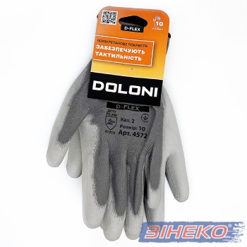 Рукавички 4572 трикотажні з поліуретановим покриттям Сірі, розм. 10 DOLONI D-FLEX Ви можете купити в компанії “ЗІНЕКО”. Рукавички трикотажні з