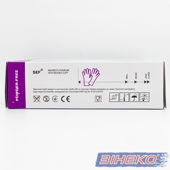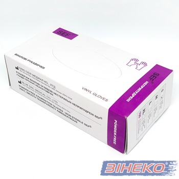 Рукавички SEF вінілові без пудри прозорі розмірі S 100 штук (7% ПДВ) Ви можете купити в компанії “ЗІНЕКО”.