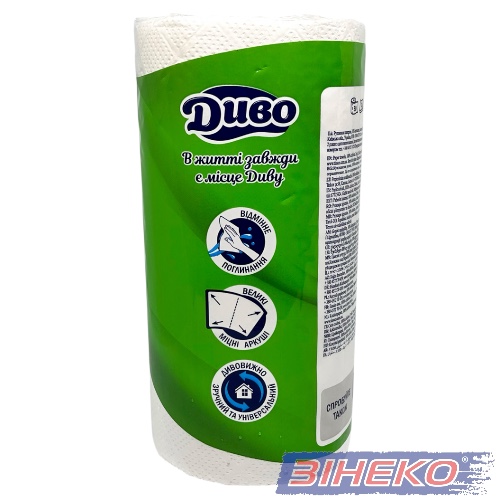 Рушники паперові Диво 2- шарові, 2 рулони, 50 відривів, білі целюлоза Обухів 4820003831885 Ви можете купити в компанії “ЗІНЕКО”. Рушник