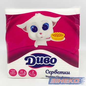 Серветки 33х33см 2шар. 50шт білі Обухів ДИВО-830178
