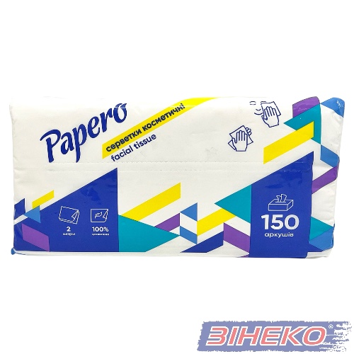 ГоловнаСерветки Серветки 20*21см 2шар. 150шт в п/ет. упаковці косметичні білі NF002, шк-2832 Papero