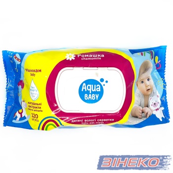 ДИТЯЧІ ВОЛОГІ СЕРВЕТКИ ТМ “Aqua Baby” ДЛЯ ДІТЕЙ ТА МАМ З РОМАШКОЮ. НОМІНАЛЬНА КІЛЬКІСТЬ: 120 ШТ.