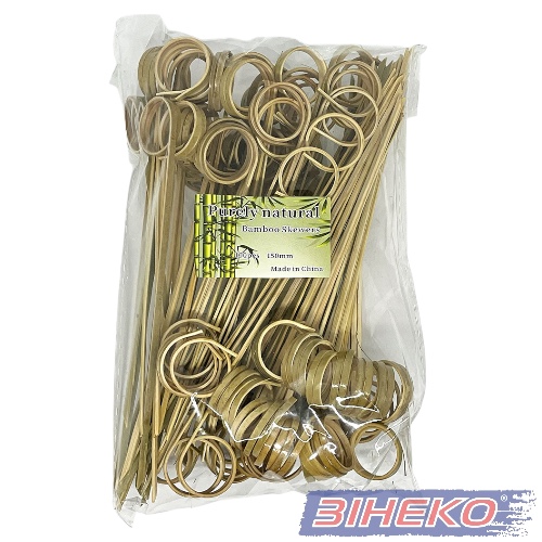 Шпажка “Петелька-Звій” 15 см 100 шт бамбук целофановий пакунок Ви можете купити в компанії “ЗІНЕКО”. Виготовлені шпажки з натурального бамбуку,