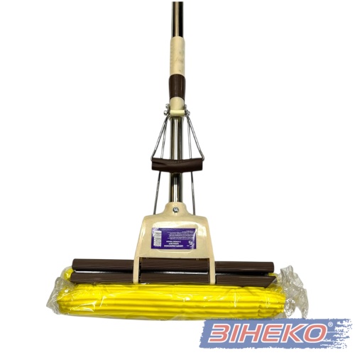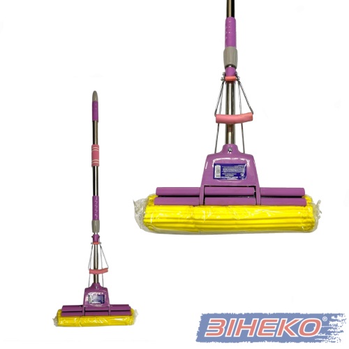 Зручна практична швабра з віджимом, має м`яку губку, яка демонструє високу ефективність під час прибирання.