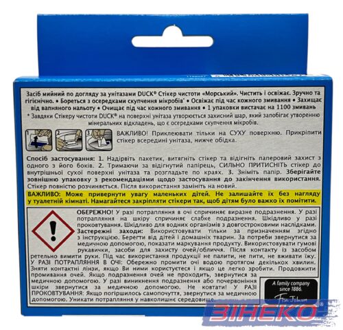 Засіб мийний по догляду за унітазами “DUCK- СТІКЕР ЧИСТОТИ Гігієна і Білизна- “Морський”.