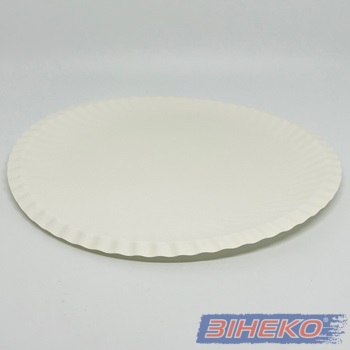 Тарілка паперова білого кольору, є практична і зручна для сервірування їжі. Виготовлена з екологічного матеріалу, вона є чудовою альтернативою пластиковим та скляним тарілкам.