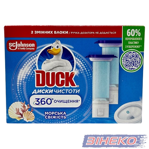 DUCK Змінний дозатор 2шт х 6 Дисків чистоти для унітазів, пісюарів “Морська свіжість” 5000204593280 Ви можете купити в компанії “ЗІНЕКО”.