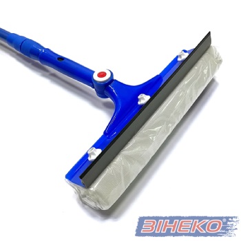 Вікномийка, з телескопічним тримачем та гумовою накладкою, Кут нахилу насадки вліво – право, регулюється фіксатором, що дозволяє мити важкодоступні поверхні.