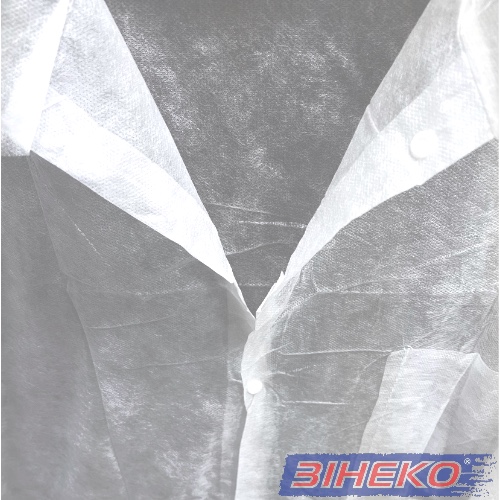 Одноразові халати виготовлють із сітки поліпропіленового матеріалу спанбонд, спеціально міцний та вологостійкий нетканий матеріал.